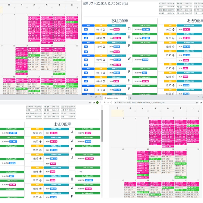 デイサービス施設などで、利用者さん、スタッフさんのスケジュールをカレンダーアプリでパソコン管理。専用アプリなので操作も簡単です。 当日の詳細な情報も一覧できて、ケアサービスに集中できます。
